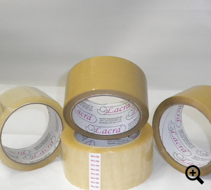 Suporte em filme de polipropileno biorientado (BOPP) na espessura de 25µ ou 28µ, com 20g ou 23g de adesivo acrílico à base d’água ou em Hotmelt com 18g de adesivo. Fechamento de caixas de papelão e embalagens em geral.